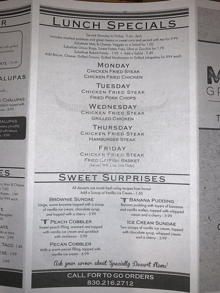 Maverick Grill and Saloon is a burger and steakhouse restaurant located in Floresville, TX. This women-owned establishment offers a variety of options for both meat-eaters and vegetarians. The menu includes classic American dishes such as burgers, steaks, and desserts, all served in a casual atmosphere. With amenities like outdoor seating, TV, and a full bar, Maverick Grill and Saloon is perfect for group gatherings or a casual meal with friends. The restaurant also offers catering services and has options for private dining. Whether you're looking for a quick bite or a leisurely dinner, Maverick Grill and Saloon has something for everyone. Don't miss out on their happy hour specials and military discounts! Give them a call to make a reservation or simply stop by for a delicious meal.